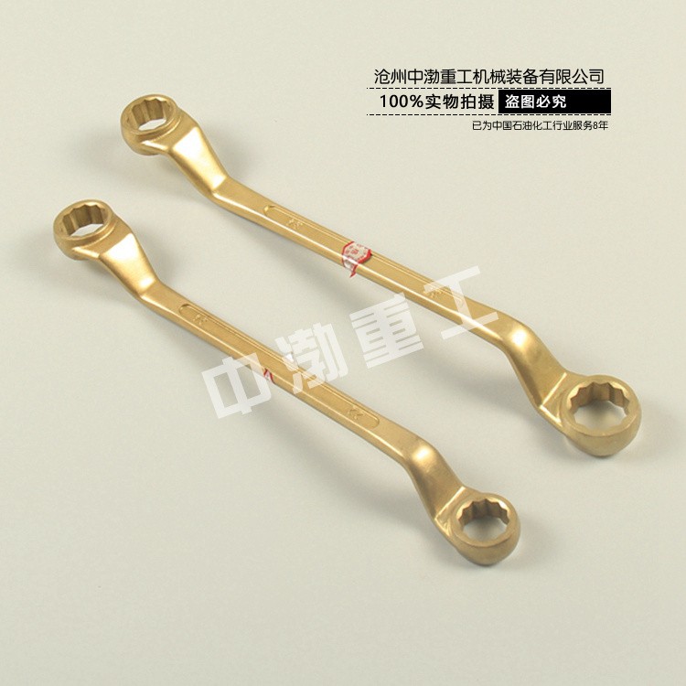 防爆双头梅花扳手两端都为梅花的用于拧转不同规格的螺栓或螺母。以铍青铜合金和铝青铜合金为材质,这两种特殊材质的产品在经过加工处理后都能起到同样的防爆功能,特别适合于在易燃易爆的工作场所使用。在军工、化工、电子、石油、石化、矿山、铁路等产品使用我们的防爆双头梅花扳手,敲击、摩擦、落锤、冲击等都不会产生火花,而这些特殊的场所就是怕出现可怕的火花引发安全事故的发生,所以我们向客户朋友们推荐我们的防爆双头梅花扳手来提高生产安全。